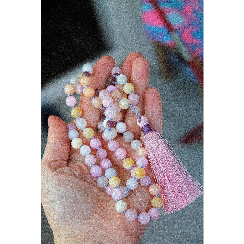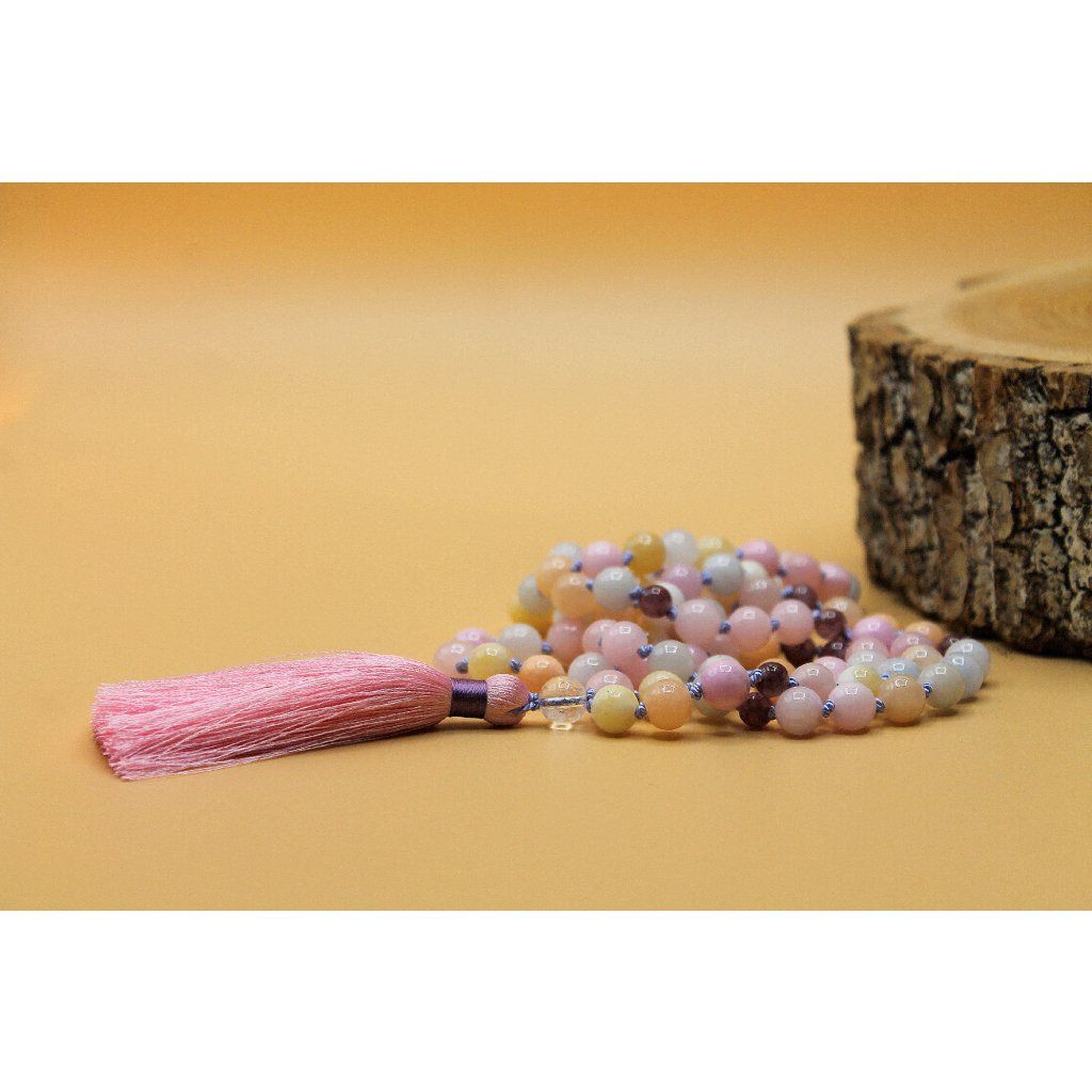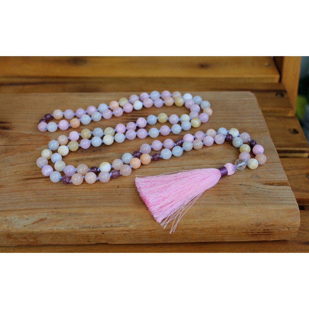 Japa Mala(delší) - morganit, lepidolit, křišťál