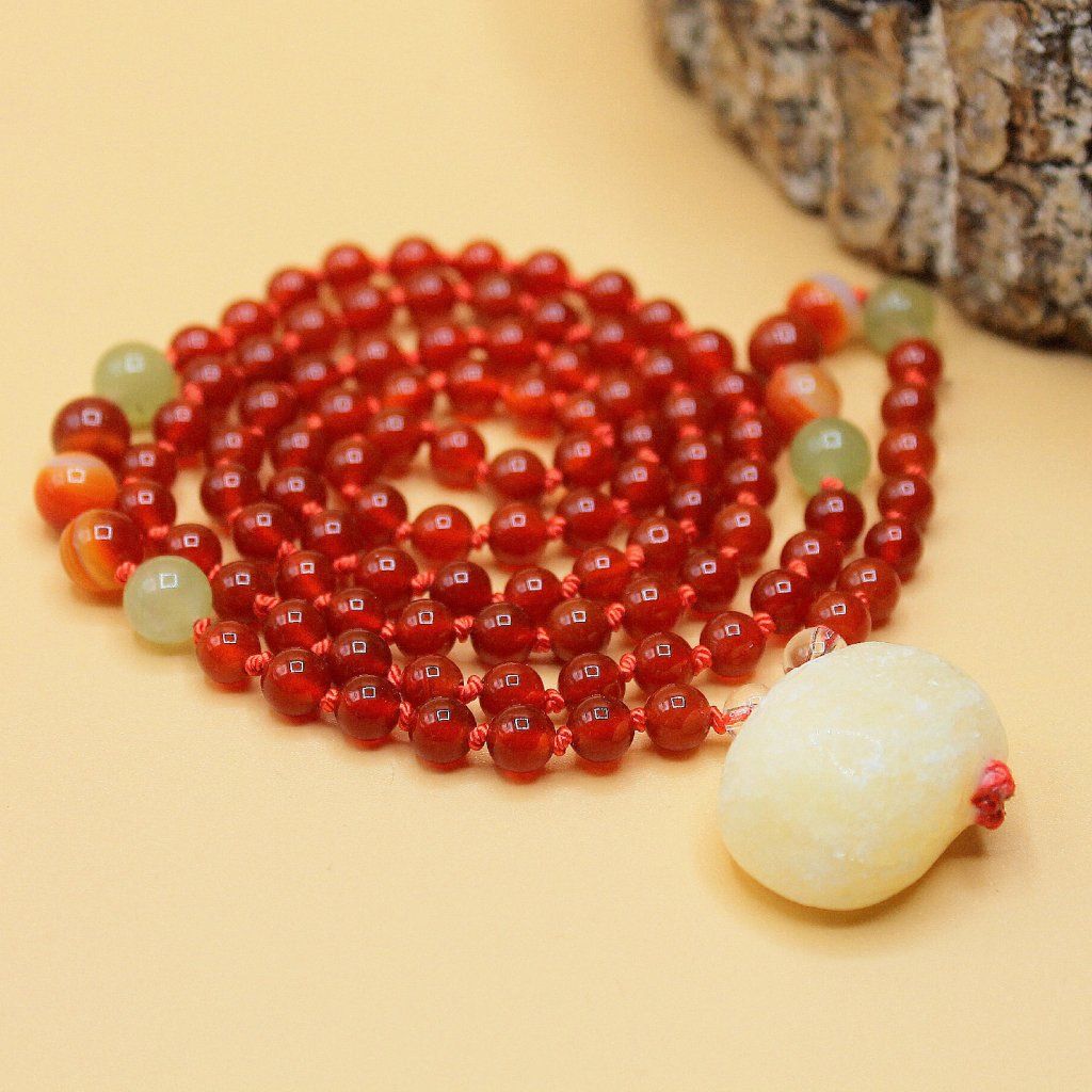 Japa Mala(tradiční) - karneol, prehnit, křišťál