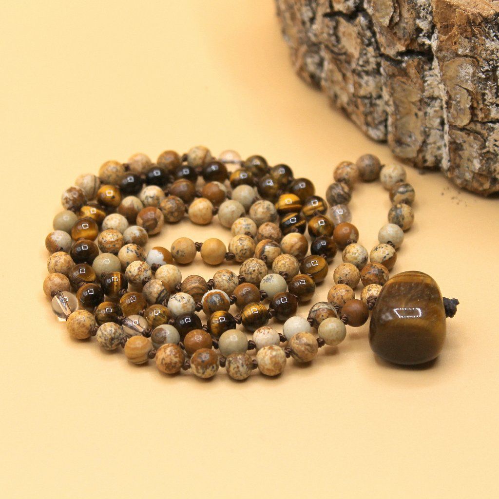 Japa Mala(tradiční) - obrázkový jaspis, tygří oko, křišťál
