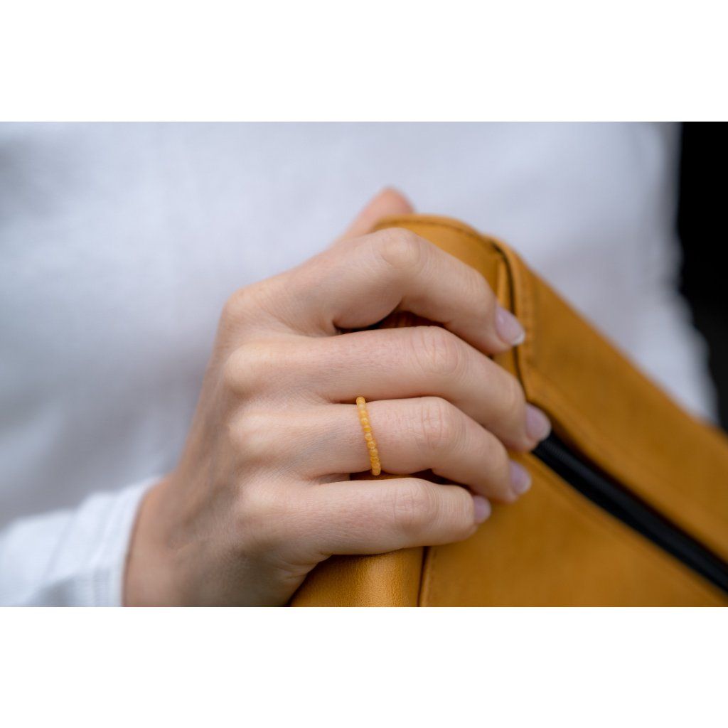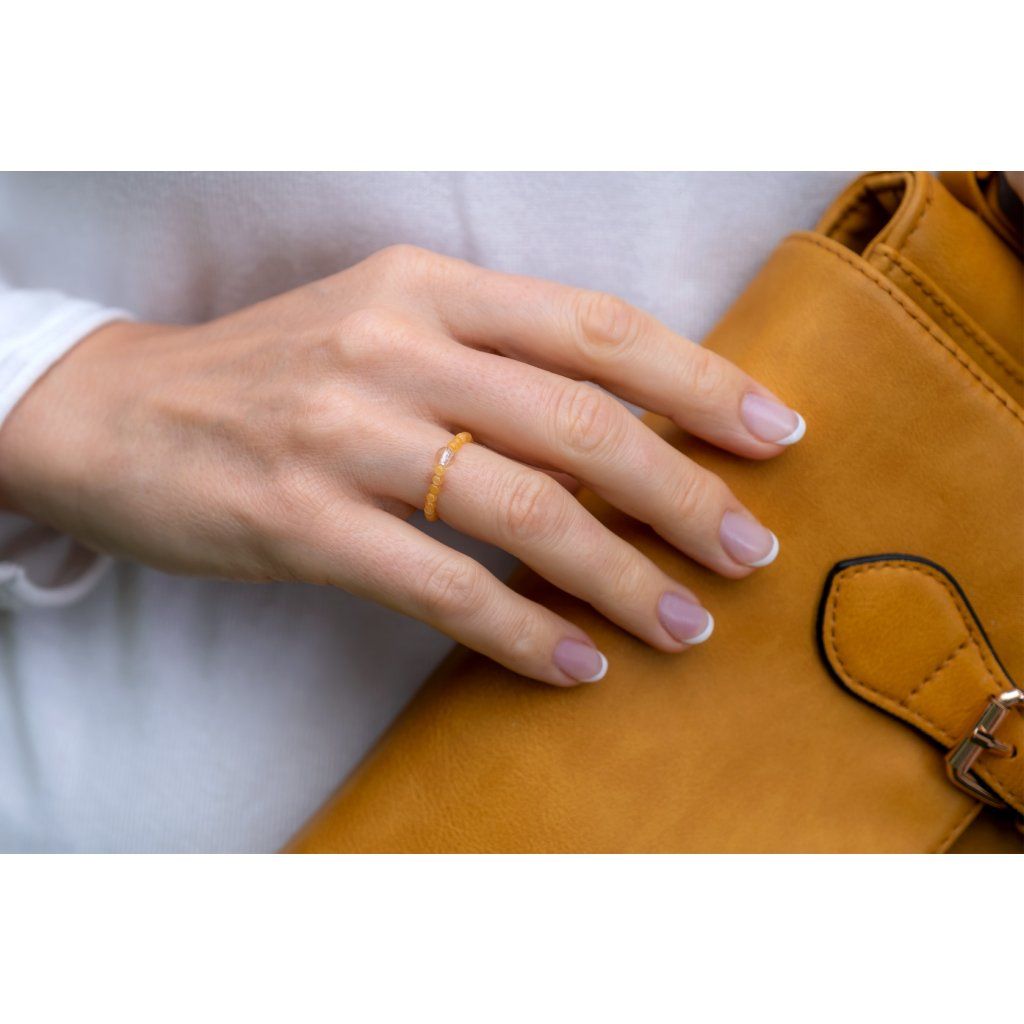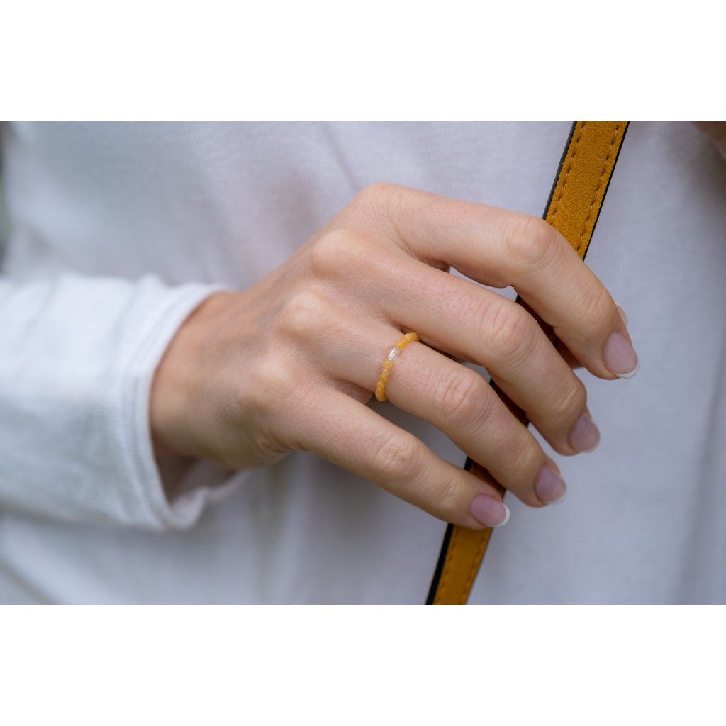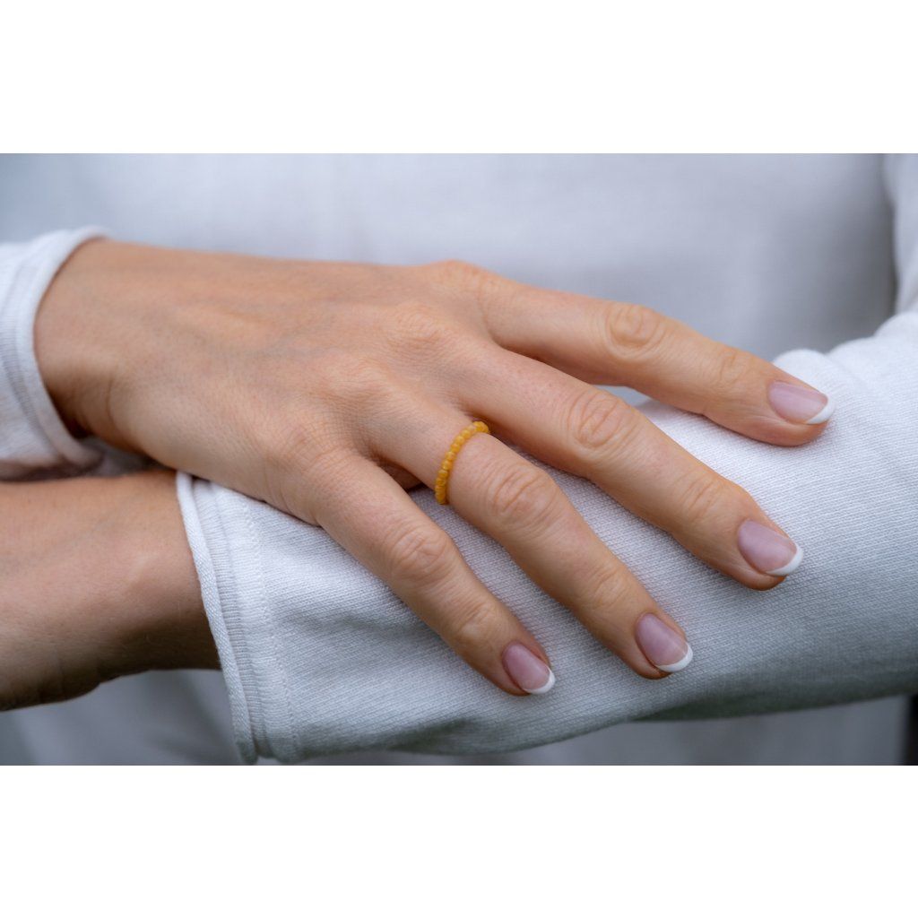 Prstýnek je navlečený na pružném vlákně. Každý korálek je originál, může se proto mírně lišit velikostí a barvou.